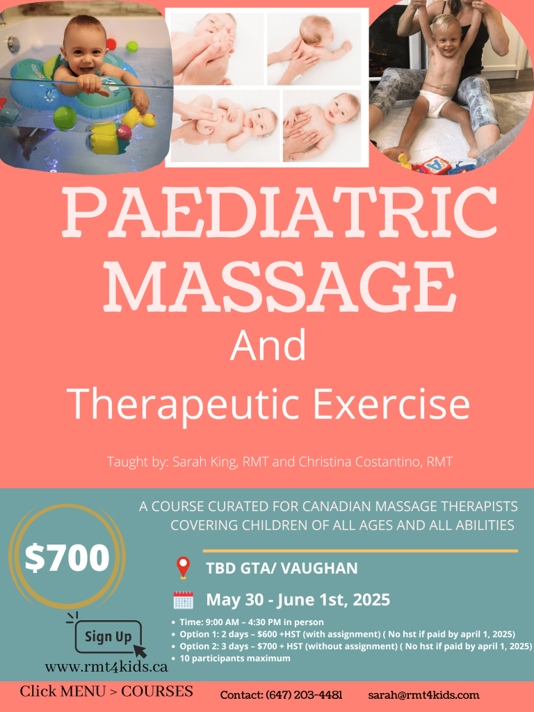 - Contact: (647) 203-4481 or sarah@rmt4kids.com